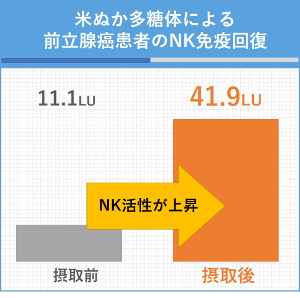 こちらの図は、免疫機能が低下した前立腺癌患者がRBS米ぬか多糖体を摂取した際の、NK活性の変化を数値化したものです。
